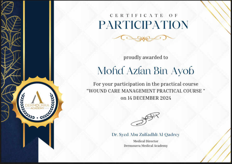 ✅ Penjagaan Luka (Wound Care & Dressing) – Rawatan luka kronik, luka pembedahan, ulser tekanan, dan luka diabetes.